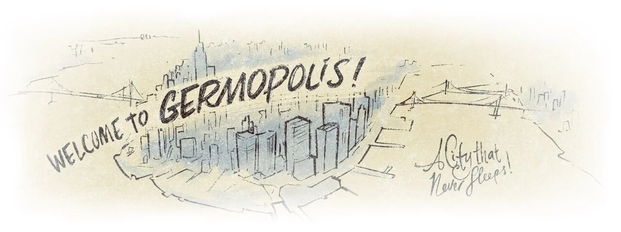Will everyone die a horrible death, or will strict sanitary measures, imminent self-isolation and heroic medical action save the people of Germopolis? The faith is in your hands.. (better wash them well!!).